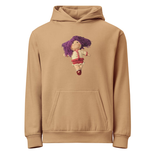 Each hoodie carries a Tukitoria doll character — originally created as a one-of-a-kind collectible by artist Veronica (Tukitoria). These aren’t just designs; they’re personalities with heart.